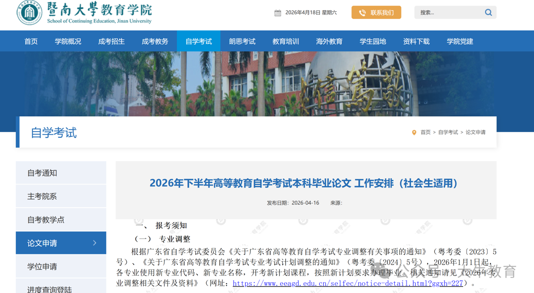 注意!2026年下半年广东自考各院校毕业论文报考和答辩要求须知