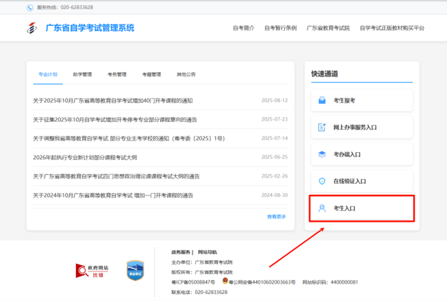 点击【广东省高等教育自学考试】--输入考生号,密码,验证码,点击【查询】,查询成绩为