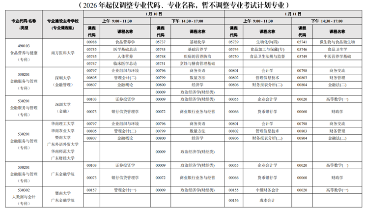 (二)2026年起仅调整专业代码、专业名称,暂不调整专业考试计划专业
