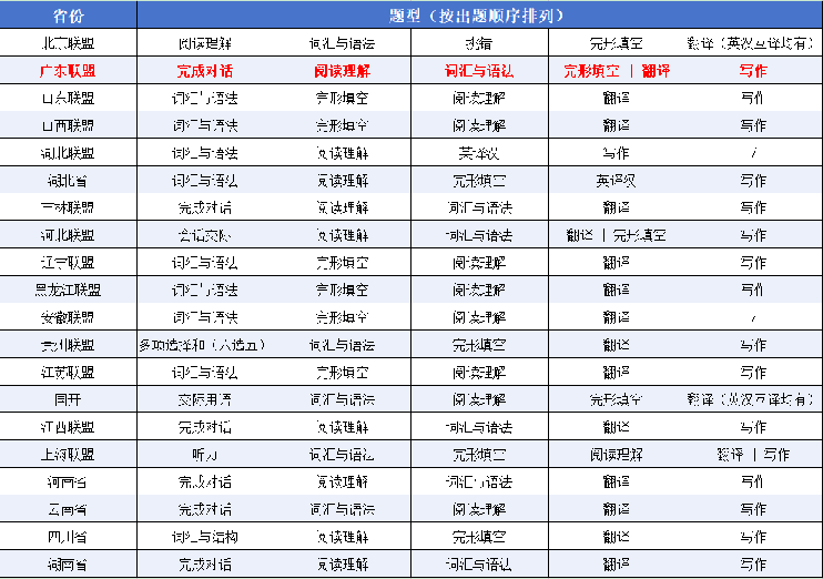 各省/高校联盟/各高校题型都是不固定的,每次都可能有变化,可能今年就考5个类型的题目,下次就考6个题型。