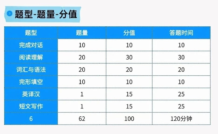 试卷常见题型主要包含:完成对话、阅读理解、词汇与语法、完形填空、翻译以及写作等,覆盖基础语言运用能力的全维度考查。