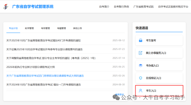广东省自考管理系统:https://www.eeagd.edu.cn/selfec