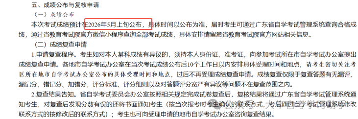 注:成绩复查仅限于复查答题有无漏评、漏记分、错记分、加错分,评分标准、评分细则以及对答题评分宽严有异议等问题不在复查范围之内。复核结果将通过广东省自学考试管理系统通知考生,考生也可向受理申请的地市自学考试办公室咨询复查结果。