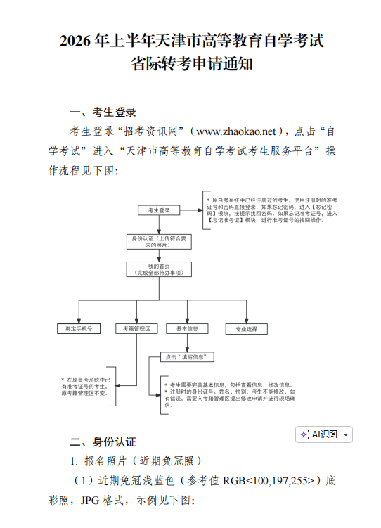 2026年上半年天津市高等教育自学考试省际转考申请通知