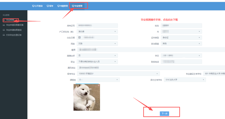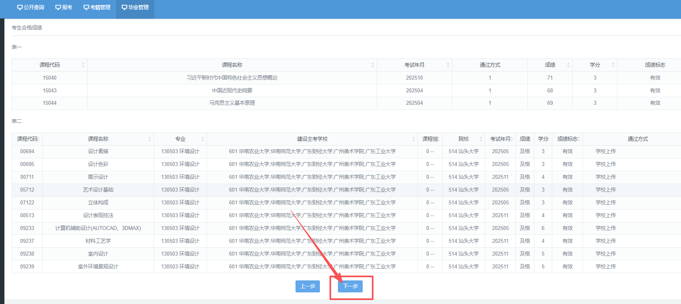 如选择“毕业预测”,点击下一步后,会直接跳过顶替选择,直接进入“第六步毕业预测”。如选择“课程顶替”,则会进行顶替选择。