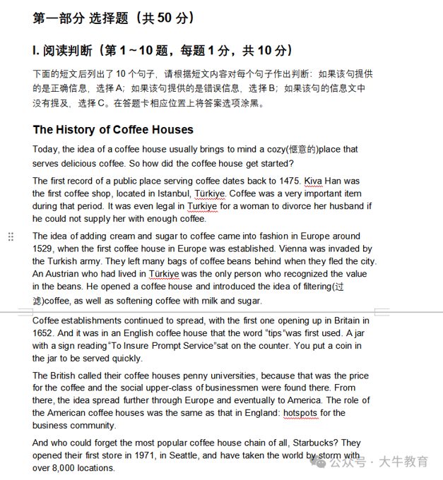 该科目采用笔试形式进行考核,题型设置全面且侧重综合能力考查,具体涵盖阅读判断、阅读选择、概括段落大意及补全句子、填句补文、填词补文、完形补文、短文写作七大模块。试卷满分 100 分,考生成绩达到60 分及以上即可合格。