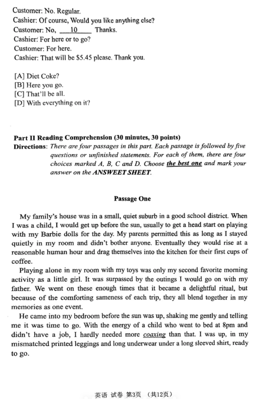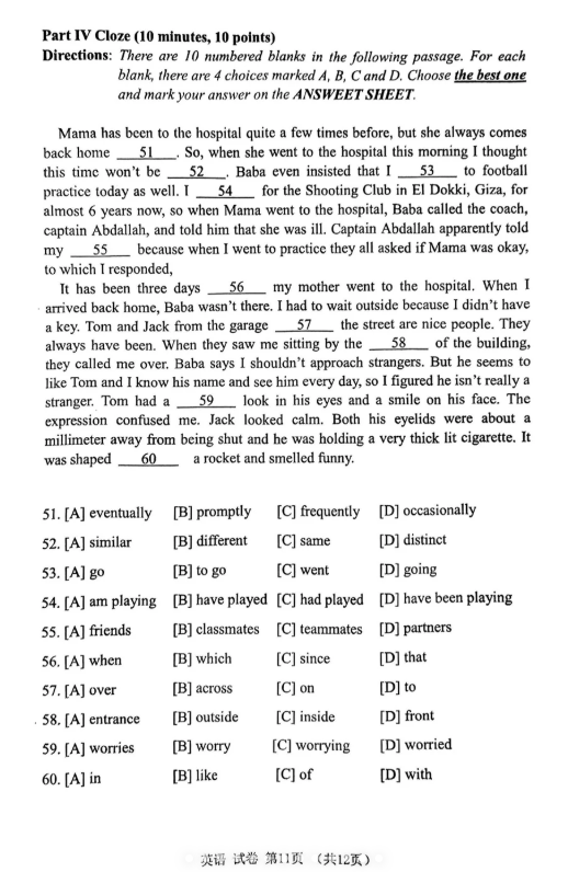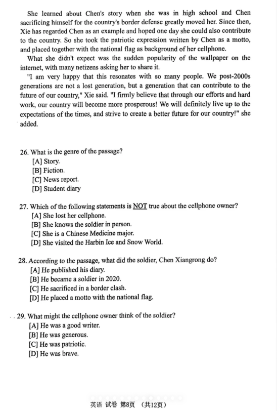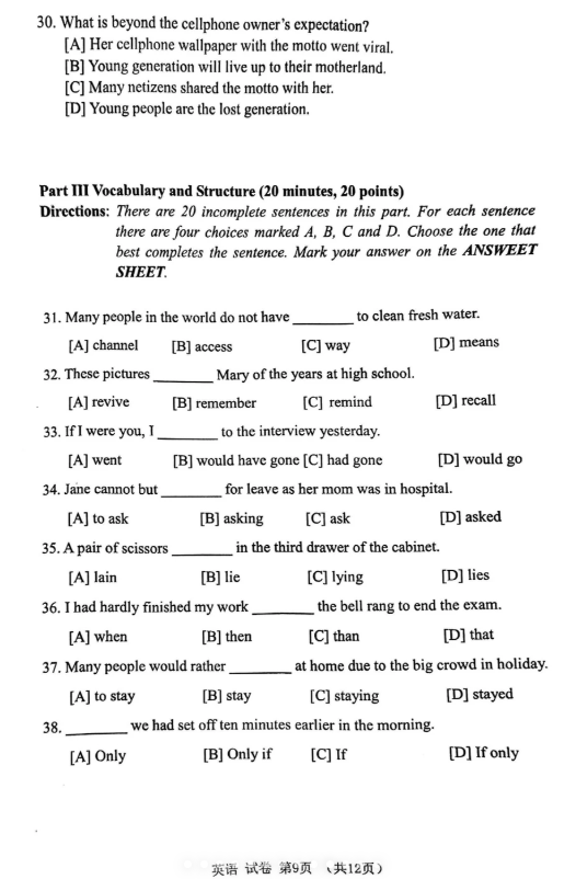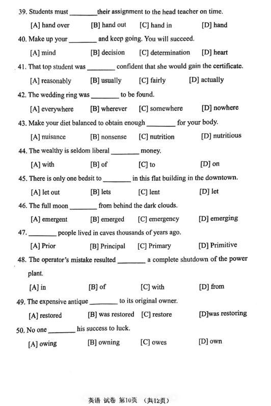【学位英语】2024年广东高校联盟学位英语真题考生回忆版