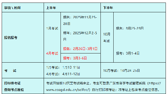 2026年4月自考报名时间暂未公布,据广州市招生考试办公布了《2026年广州市自学考试常规工作时间安排表》,4月自考报名时间预计是2月26日-3月6日,打算报名这次自考的考生可以留意考试院的最新通知!