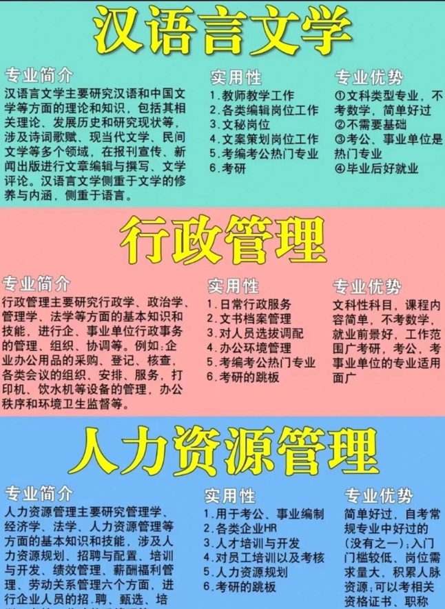 如果你的学习基础比较一般,考研目标以 “稳妥拿证” 为主,不妨考虑教育类、文学类、社会工作类专业。这类专业的优势十分突出,自考阶段考核难度适中,考研时竞争压力也相对较小;更重要的是,研究生毕业后无论是考公、考编还是求职,就业面都很可观。