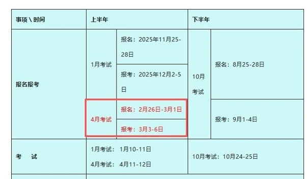 根据广州市招生考试办公布了《2026年广州市自学考试常规工作时间安排表》;由此我们可以看到2026年4月广东自考报名时间是2月26日-3月6日,打算报名这次自考的考生可以留意考试院最新报名通知!