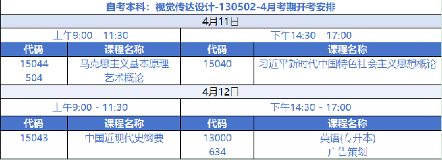 一、4月自考视觉安排表