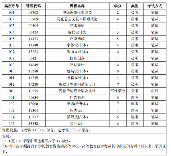 自考专业|2026年广东自考视觉传达设计(130502)专业开考科目安排表!