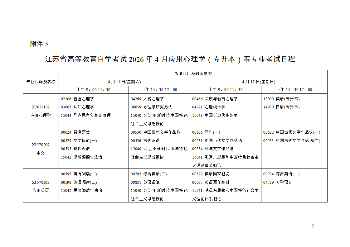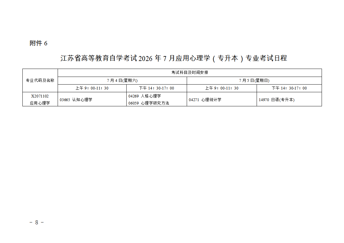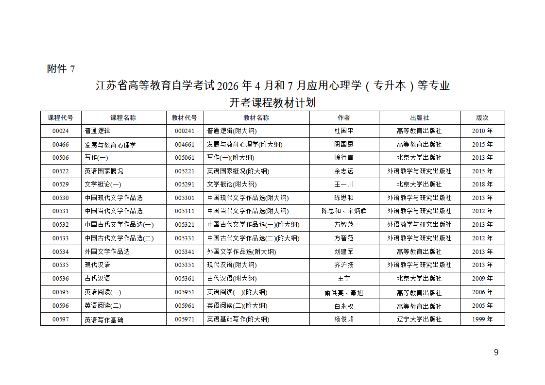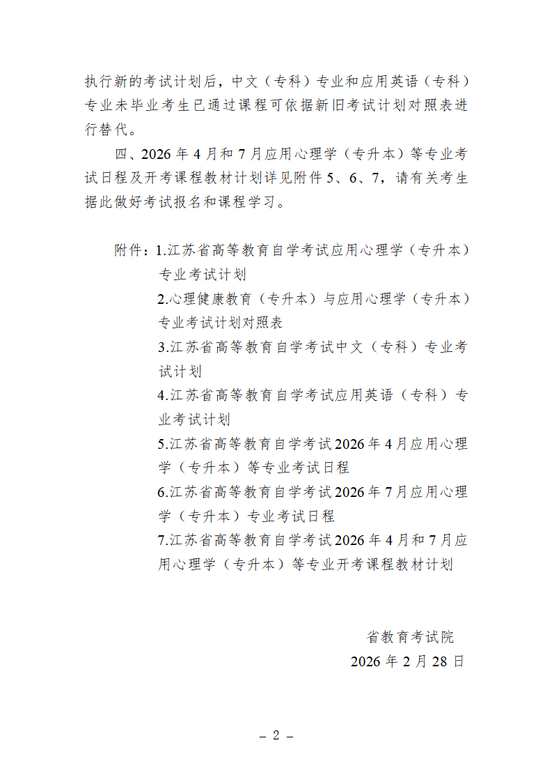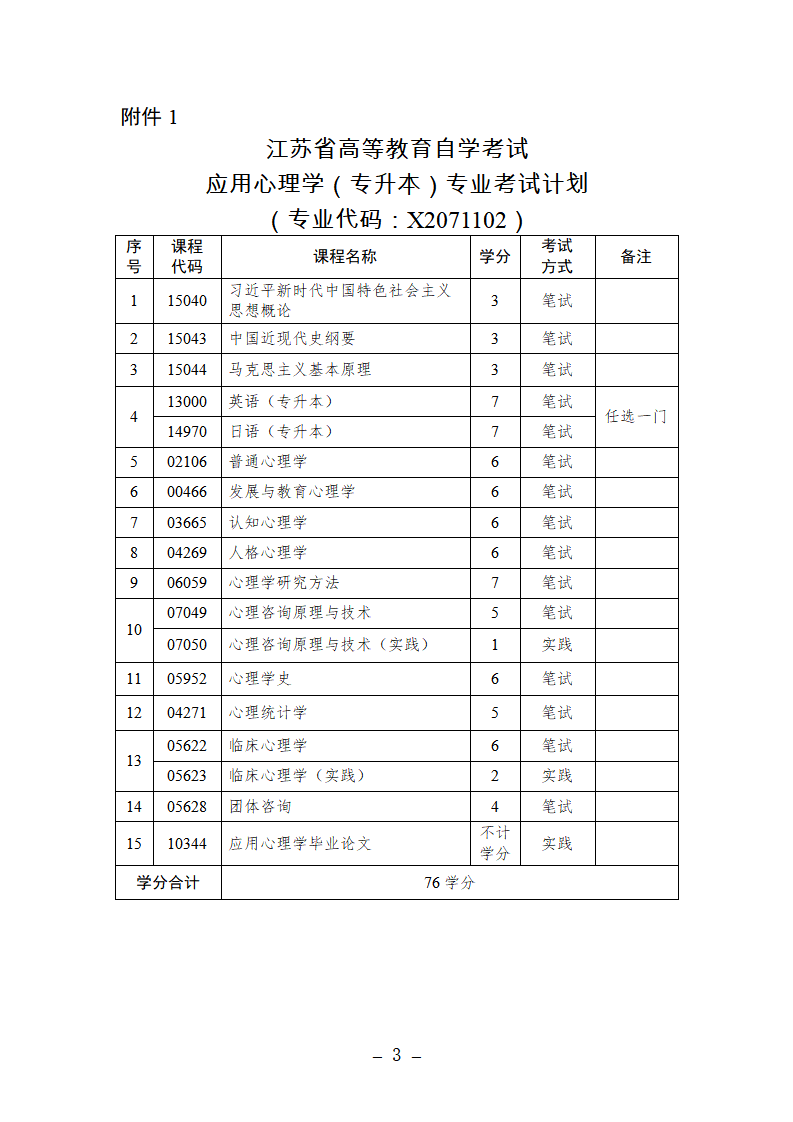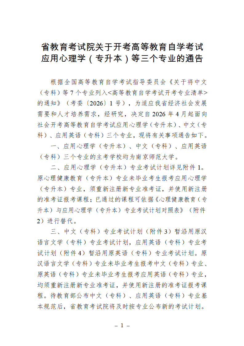 江苏关于开考自学考试应用心理学(专升本)等三个专业的通告