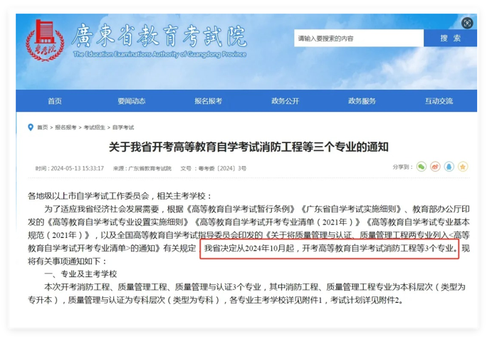 学校经广东省教育考试院批准,现面向社会开考专升本层次消防工程专业。